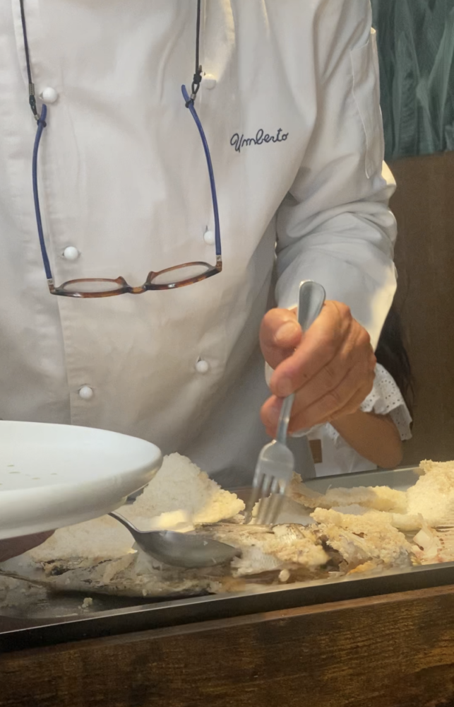 Una cucina non elaborata, ma semplice, immediata e con cotture veloci, dove tutto ruota intorno alla materia prima, al pescato che suo padre Umberto, pescatore e appassionato di cucina, gli fornisce quotidianamente. I “fuori carta” legati al fresco giornaliero sono a mio avviso i piatti più interessanti di questo indirizzo. Per cui, a seconda della stagione, capita di mangiare il sarago, lo scorfano, le cozze, i taratufi, i fasolari, le ostriche, le alici puteolane, il polpo, pescati la mattina e cucinati in giornata dal cuoco Mirko Cacace, che in fatto di cucina di pesce ne sa abbastanza (tra le ultime esperienze conta quella di capo partita da Crudo Re a Napoli).