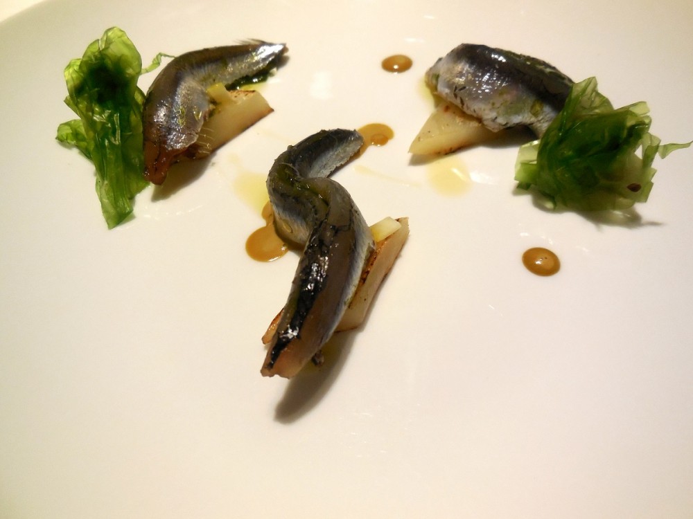 Alici crude ripiene di cavolo nero insalata di mare anemoni barba massese – Forte penetrante