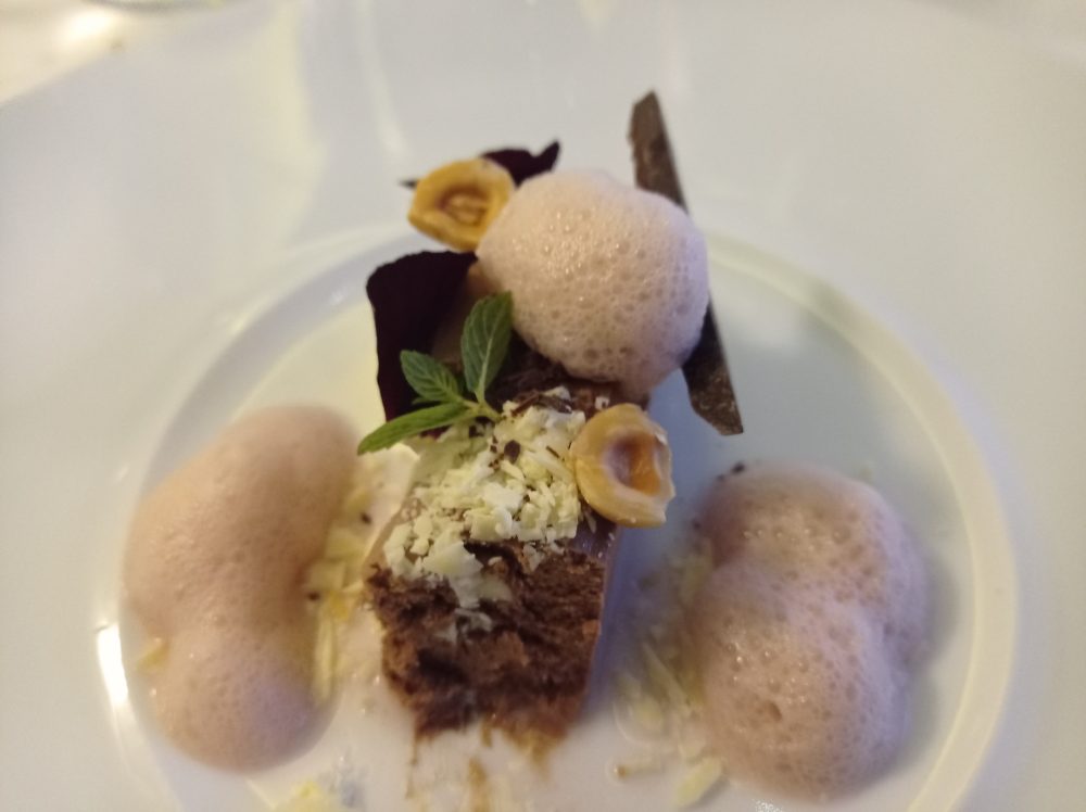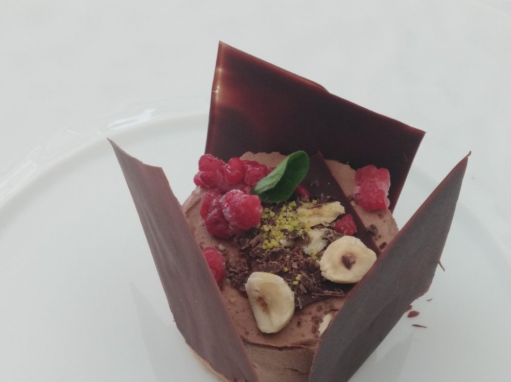 Ristorante Emozionando Cremoso al gianduia, aria ai frutti rossi e croccante fondente