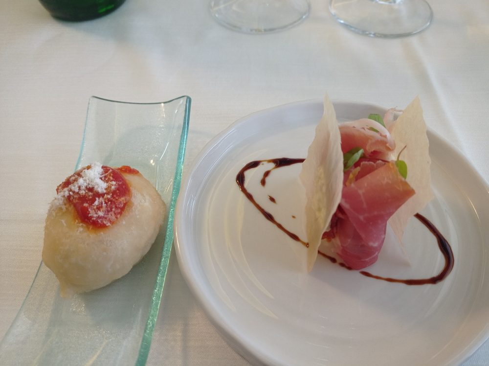 Ristorante Emozionando Pinchos al crudo di Parma e montanarina