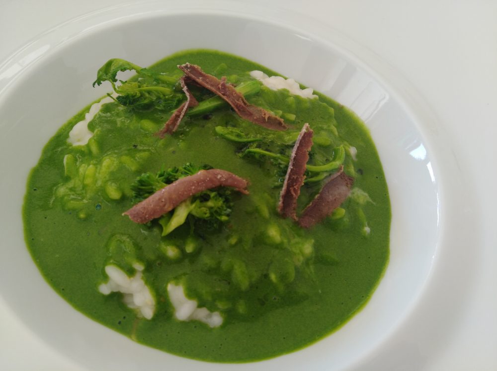 Ristorante Emozionando Riso Carnaroli con spuma di bloccoli, bottarga e blu di bufala