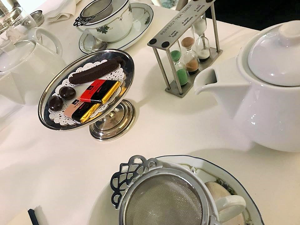 E persino il momento del relax finale, successivo al dolce, non è lasciato al caso. Difficile da trovare, la carta dei tè, in carta d’Amalfi ed impreziosita da fiori secchi. Custodisce una selezione di miscele, ideali a fine pasto e serviti con cioccolato ed una clessidra che scandisce il tempo di infusione.