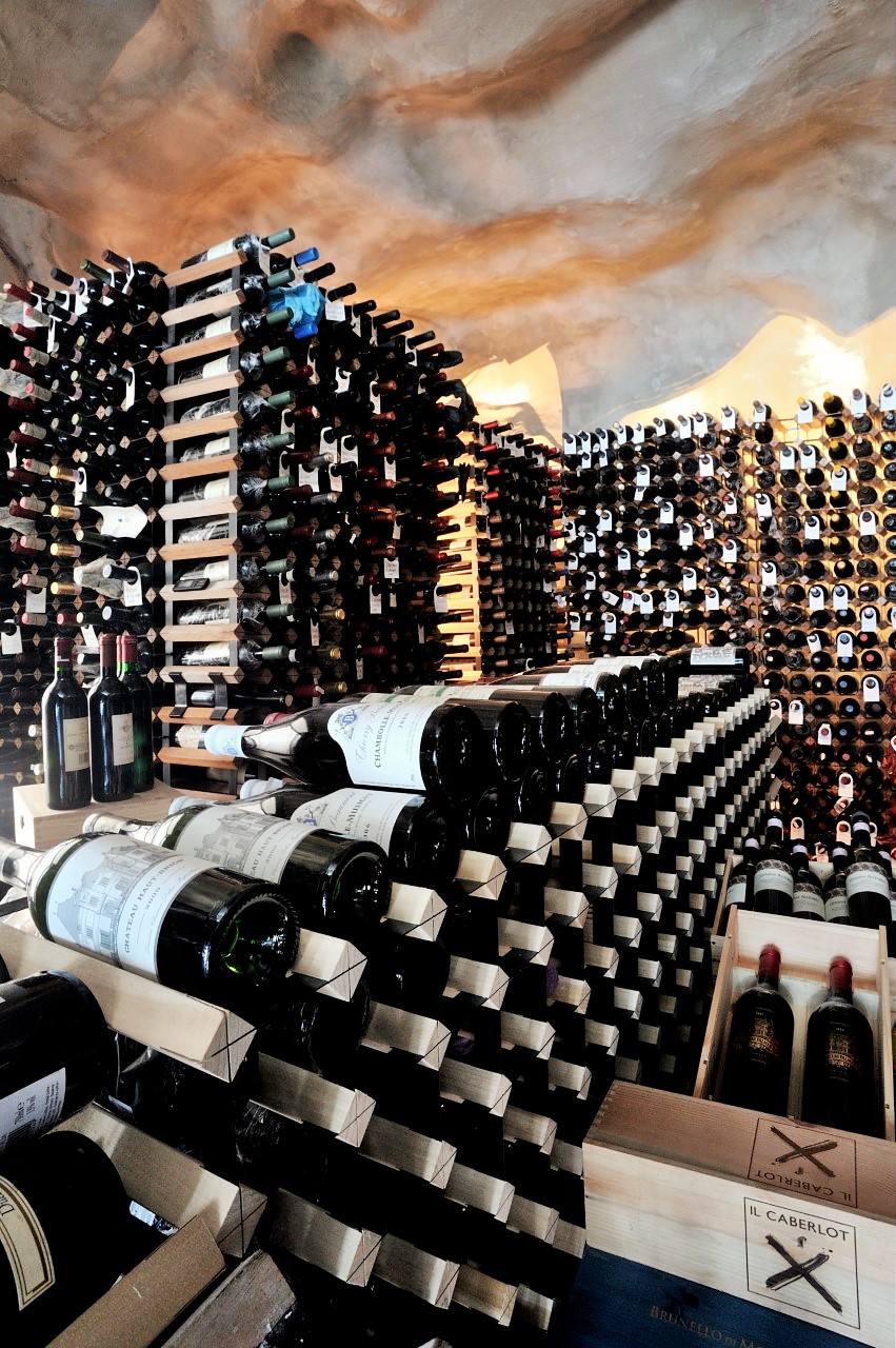 Voglie di osare anche in cantina, con circa 2000 etichette, sempre in fase di espansione. Ci sono i migliori vini d’Italia, con la possibilità curiosare tra diverse annate. E poi le bottiglie dei viaggi in giro per il mondo, che grazie all’aiuto del sommelier Antonio Pappacoda, fanno si che il locale funzioni con indovinati abbinamenti cibo e vino.