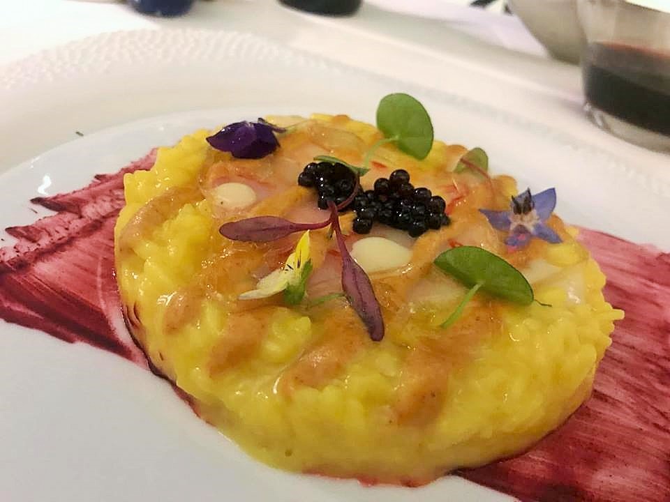 Mantecato al limone, con carpaccio di gamberi e salsa al riccio di mare, con quest’ultimo appena pescato che rimanda di nuovo alle profondità del mare; con l’acidità del limone ben bilanciata.
