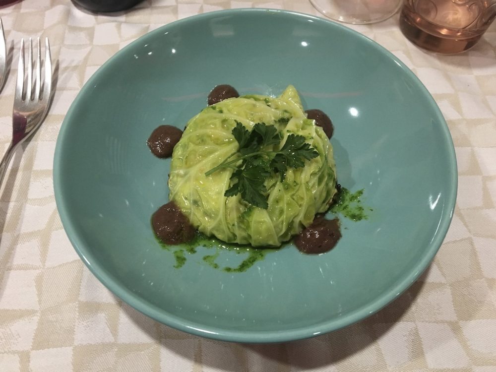 Gerani Ristorante – Tortino di verza con verdure dell’orto di famiglia