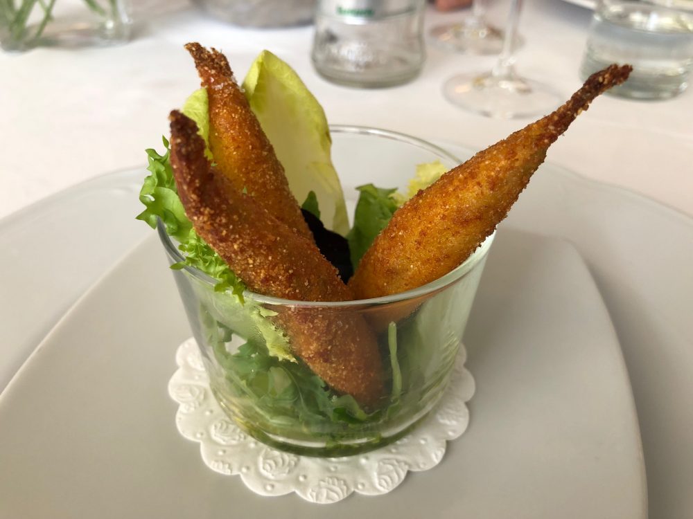 Il Ghiottone, Alici fritte con misticanza, il piatto che si può presentare al cliente solo se si ha la certezza assoluta della freschezza del pesce, certezza quarantennale, assaggio goloso che potrebbe presentare il rischio dell’indigeribilità, non è questo il caso, non è questo il posto, qui indubbiamente solo certezze