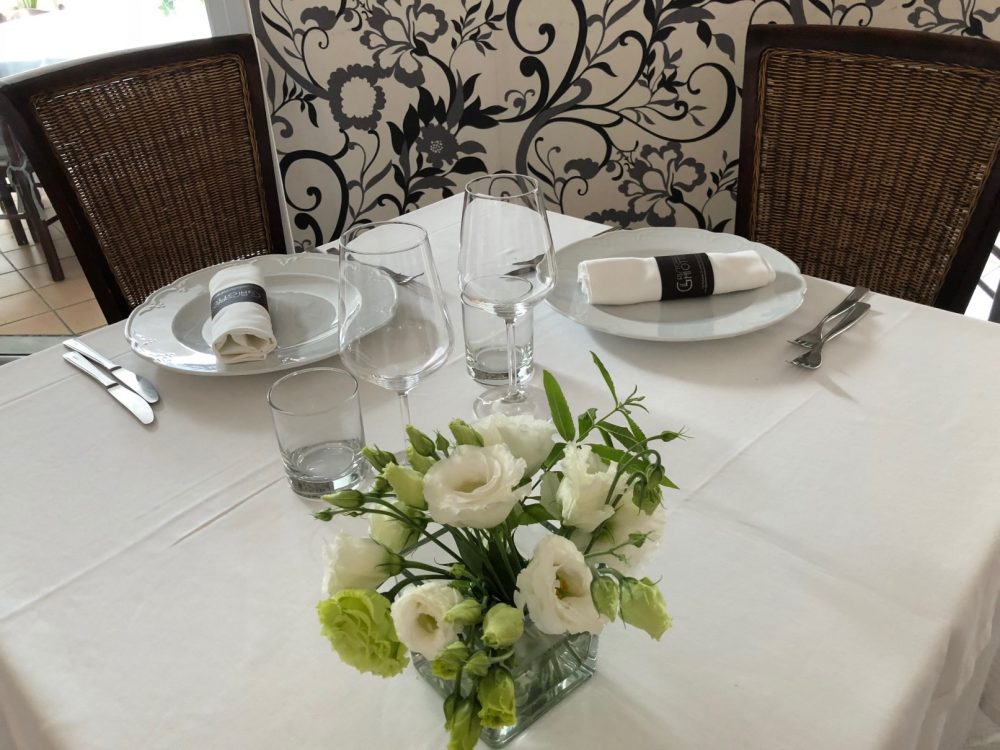 Il Ghiottone, l’elegante mise en place, indubbiamente di gran tono, sobrietà e garbo, senza eccessi come la proprietaria
