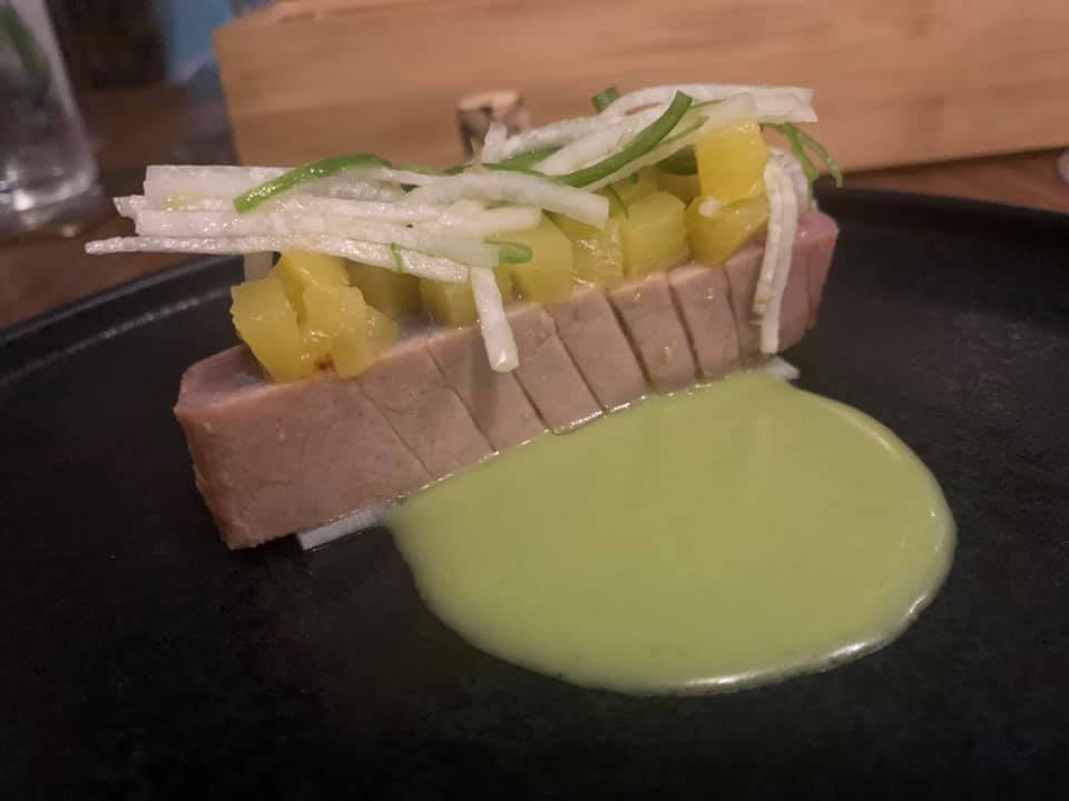 Il Principe, Tonno rosso marinato soia e miele, ananas, peperoncini verdi, sedano rapa e daikon