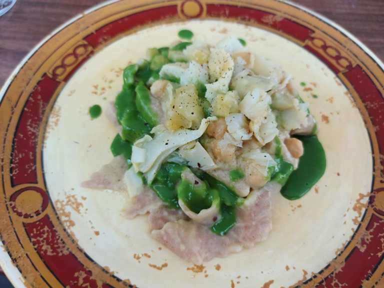 Il Principe, Lagane di farro, hummus di ceci, stoccafisso all’insalata, limone fermentato al sale e ortiche