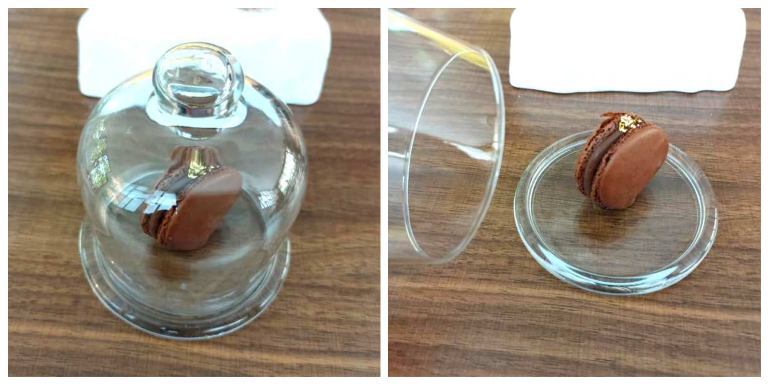 Dopo il macaron al cioccolato due i dessert assaggiati, uno fresco e vellutato a base di limone e un super goloso lingotto di cioccolato amaro con frutto della passione, fava di cacao pralinata e caramello.