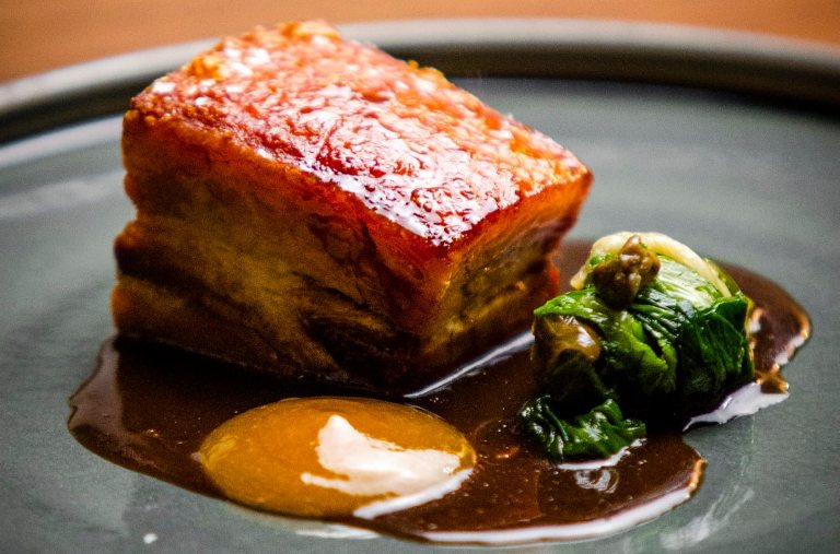 Il Principe, Pancia di maialino in lenta cottura, albicocca pellecchiella e scarola ripassata