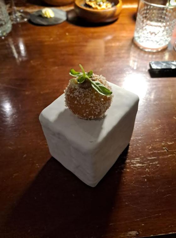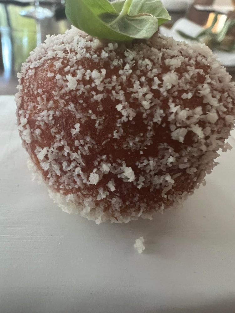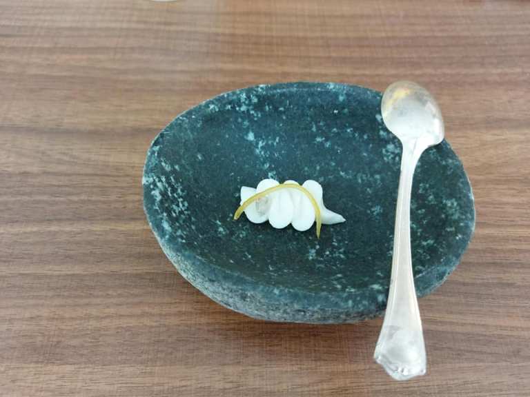 Si comincia con un po’ di acidità dopo gli appetizer che ci ricordano che siamo in Campania. Boccone veloce e gradecole. 7