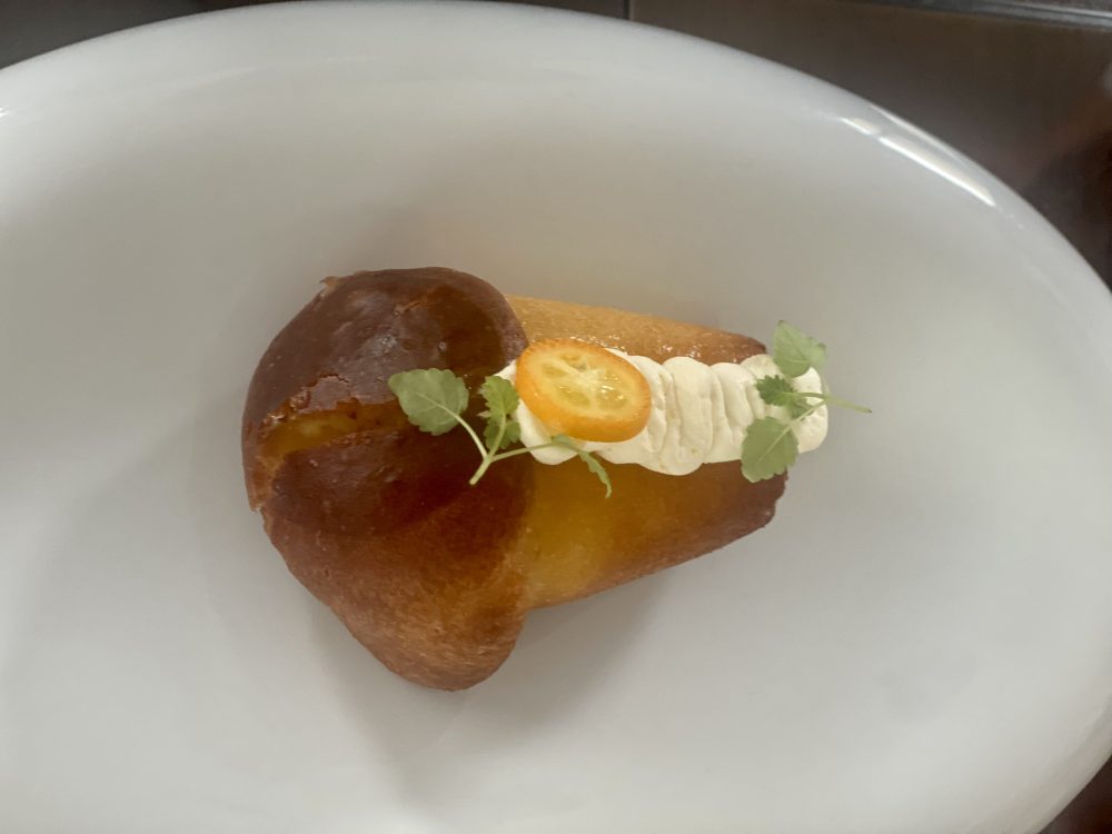 Anche i dessert prendono spunti dai classici della pasticceria napoletana: il Babà, in questo caso è bagnato al whisky torbato, accompagnata da chantilly montata agli agrumi e albicocca in confettura.