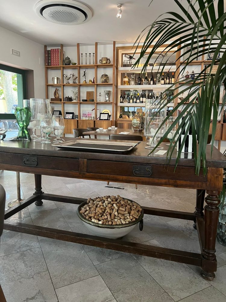 A pezzi vintage si affiancano tante bottiglie di vino, suppellettili orientali, premi e riconoscimenti, un mix di elementi che conserva una armonia di fondo muovendosi sempre lungo la direttrice di uno stile che ha l’impronta della personalità di chi lo ha concepito.