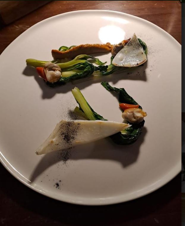 Secondo me l’unico piatto sbagliato: la cottura è perfetta, ma c’è troppa roba diversa dentro e il piatto non prende una direzione, alla fine resta la sapidità. Eccessivo il pane tostato in un gioco di consistenza che non serve nulla. 6