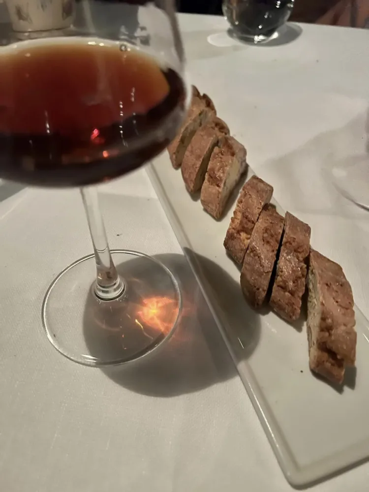 Proseguiamo con scampi, cozze e pancotto. Oltre ad apprezzare la freschezza e la qualità di scampo e cozze, facciamo un plauso allo chef per l’eccezionale cottura che esalta ancora di più le caratteristiche dei crostacei e molluschi. Buono anche il pancotto. Nella versione contemporanea avremmo gradito un effetto crunchy nel piatto che, pur di buona fattura, era a nostro avviso troppo morbido al morso.