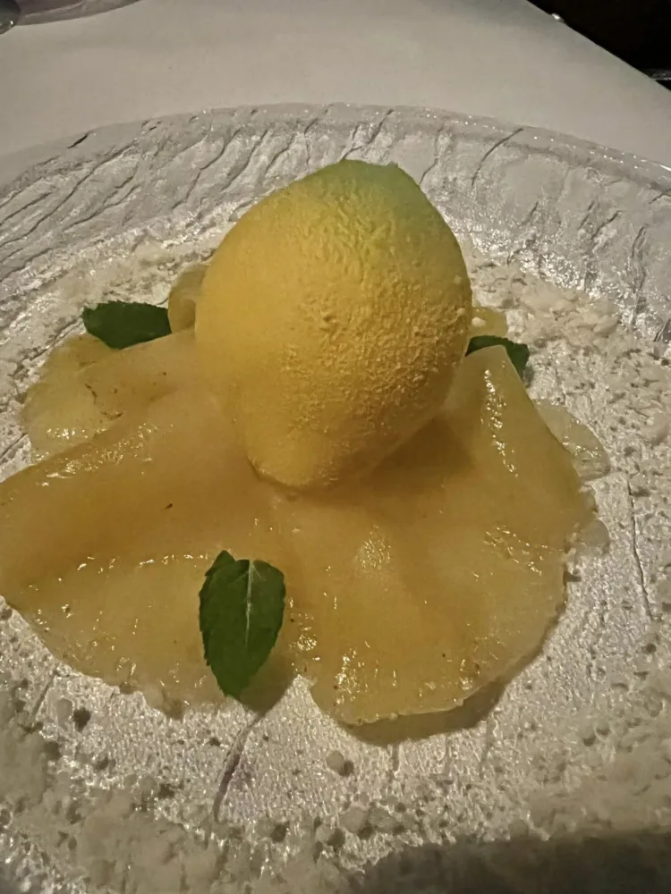 Come dessert un limone ricostruito esternamente con cioccolato bianco ed all’interno un semifreddo al limone su crumble di frolla. Proprio il caso di dire bello e buono, oltre che interessante idea.