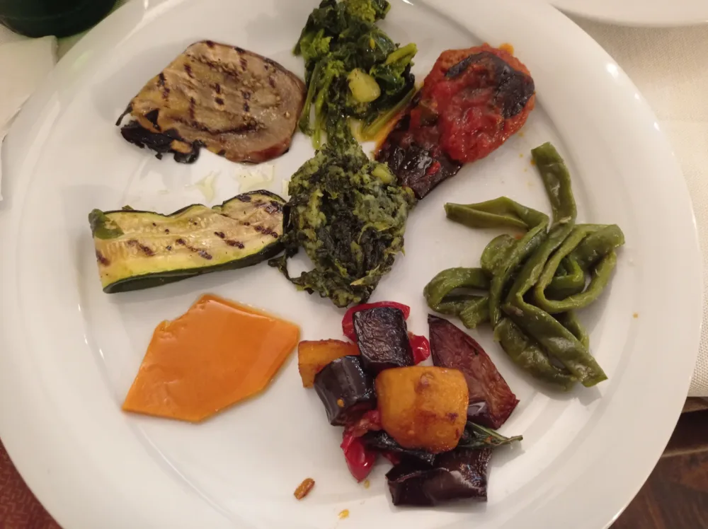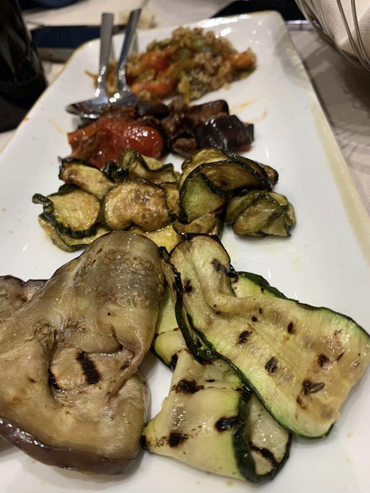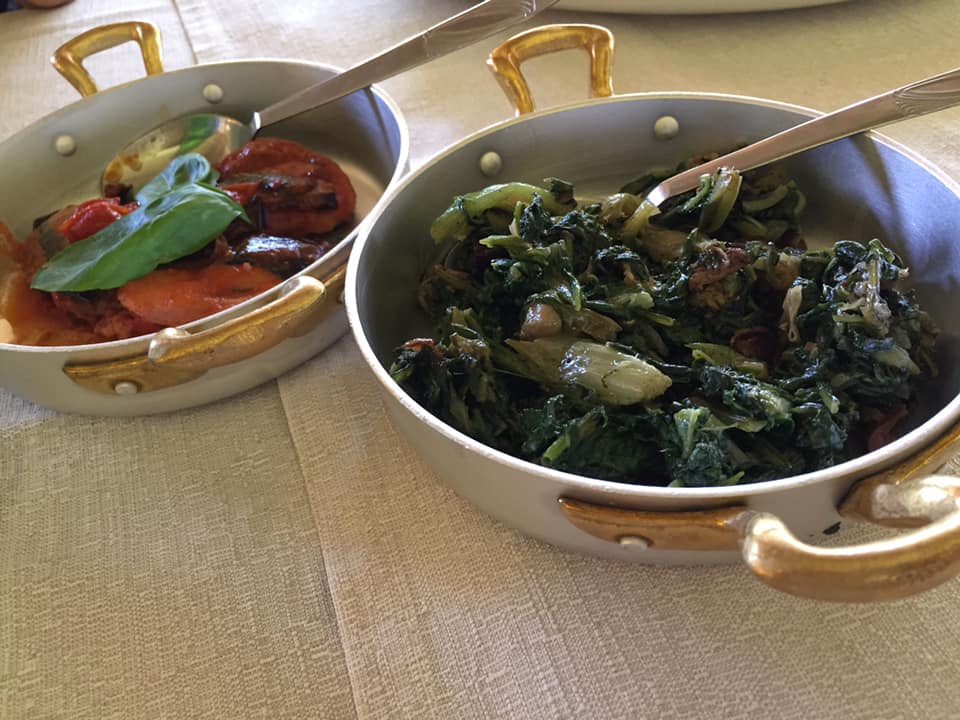 E ancora – come da tradizione in Cilento – un trionfo di verdure, a seconda del mercato, con chicche imperdibili, dalle melanzane “impaccate” (con pomodoro e cacioricotta di capra), alle patate “arreganate”, cioè tagliate sottili e cotte al forno con origano e cipolle, molto gustose.