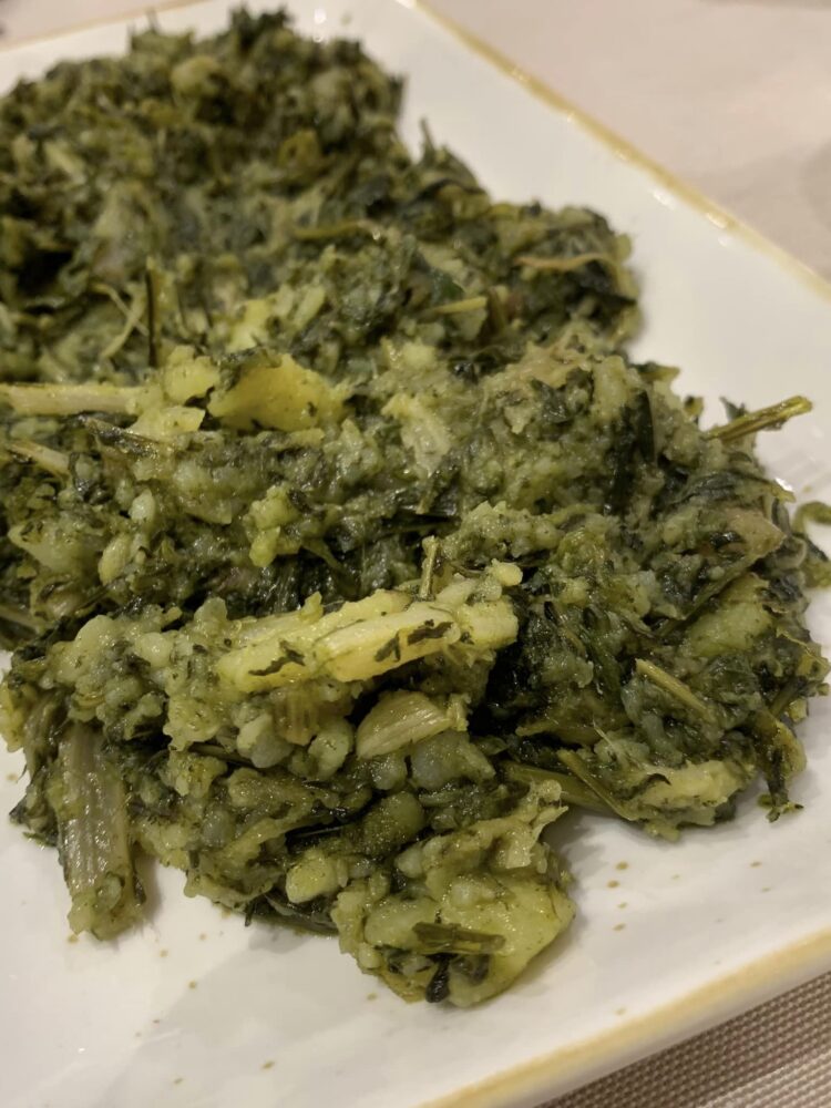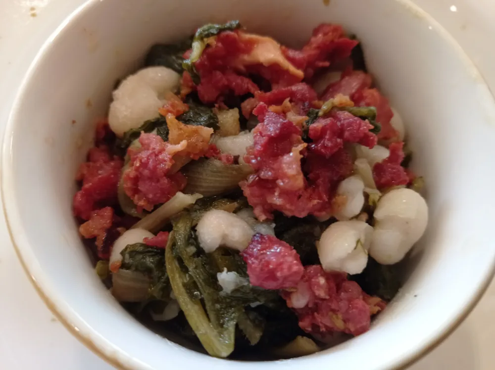 Zuppetta di fagioli, borragine, cardoni e noglia. Prezzo 10,00 euro. Una semplice ma saporita zuppetta, assemblata con ingredienti locali perfettamente aggregati.