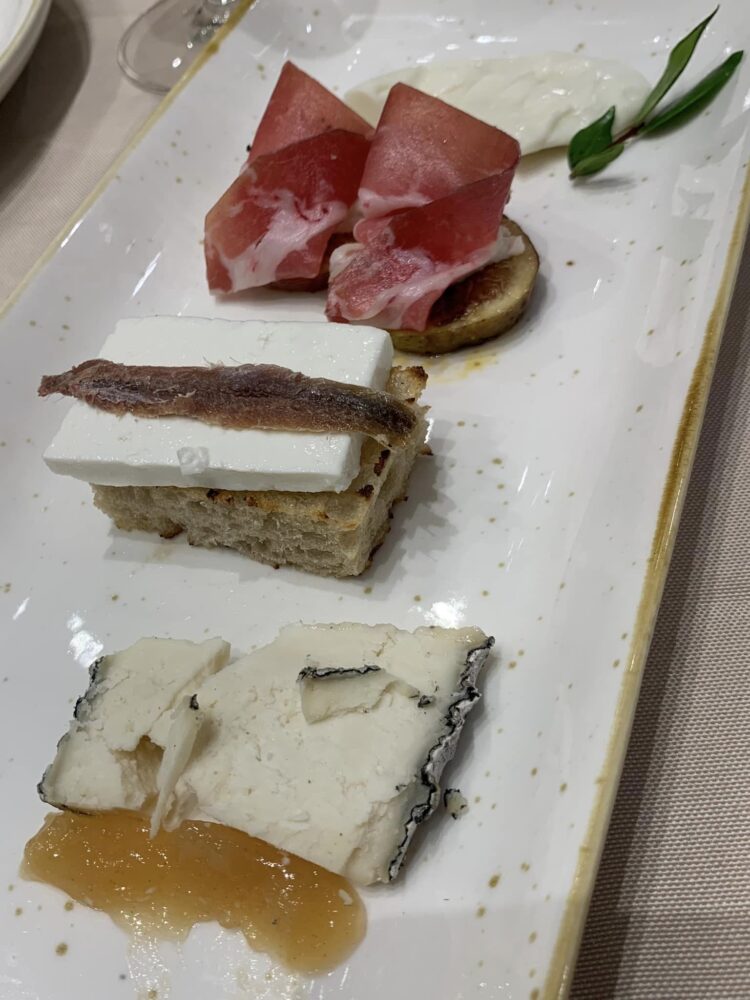 La Chioccia d’Oro, fico bianco del Cilento con caprino, prosciuttella e cipolla