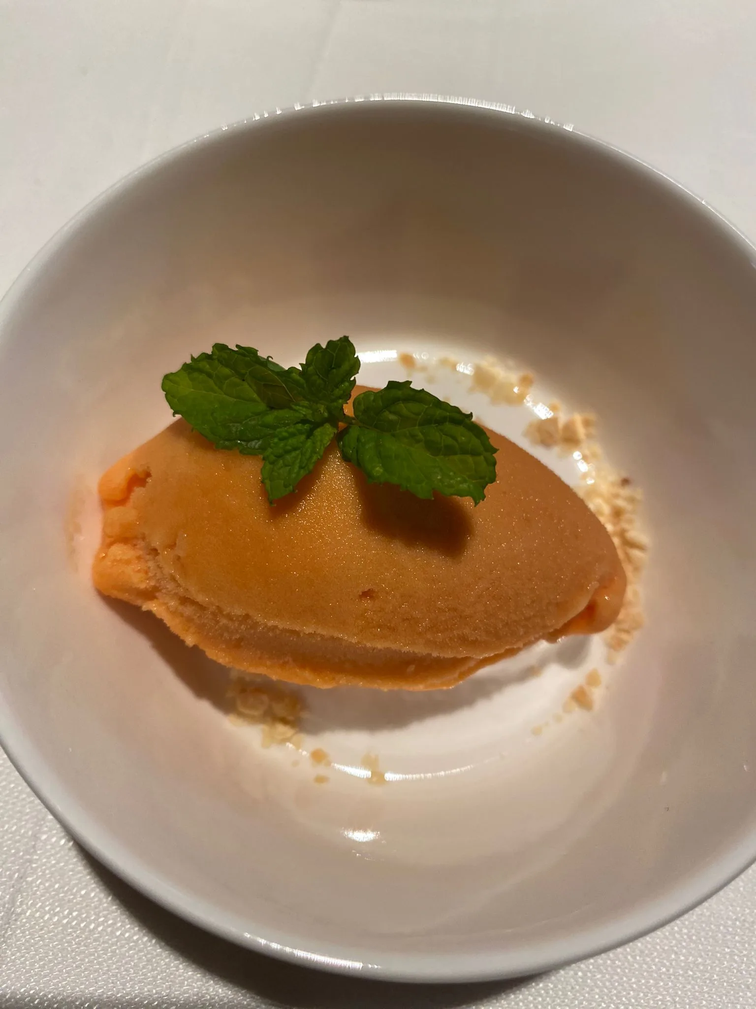 Anche questo un piatto d’immaginazione rafforzata dal cucchiaio che arriva a tavola bollente, la sensazione è quella dell’immersione negli abissi marini. Cuttaia è un genio!