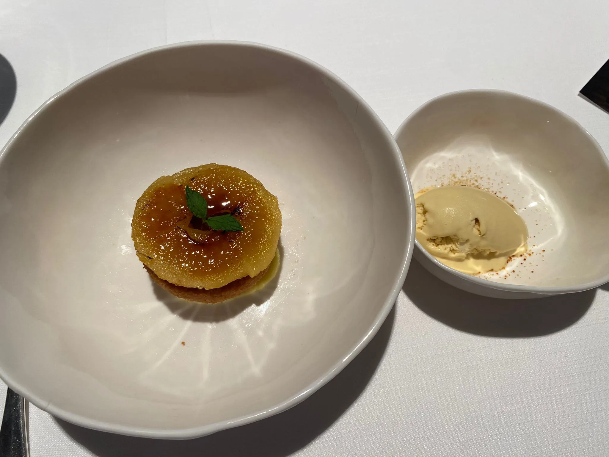 Di chiara scuola francese invece, la Tarte Tatin. L’esplosione di gusto data dal burro della pasta brisée è sublimata dal gelato alla mandorla.