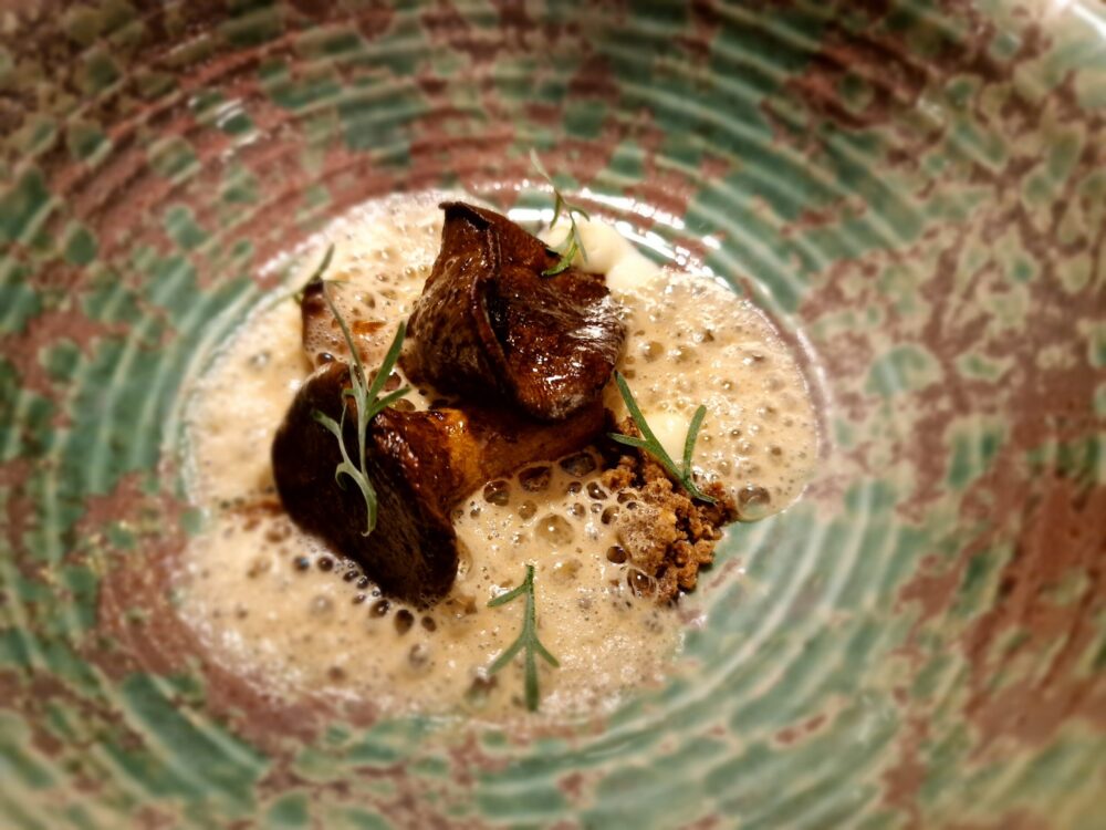 l’acciuga Perugia – funghi, parmigiano, caffè, fondo di cipolla, artemisia absinthium