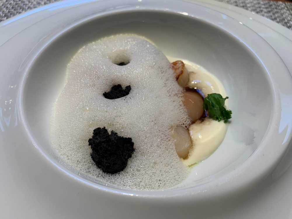 Lasarte a Barcellona, cappesante con funghi, uovo di quaglia, cavolfiore e tartufo