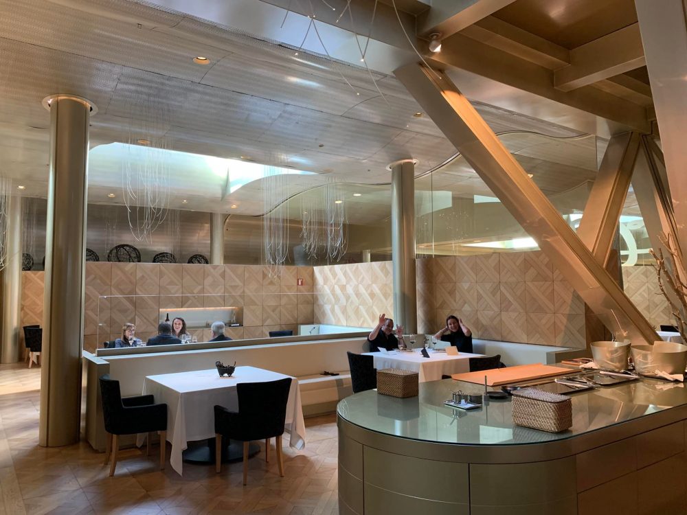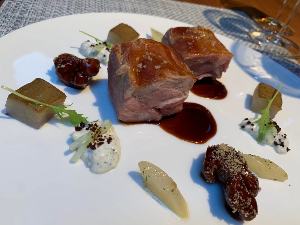 Dal foie gras caramellato con anguilla alla spalla d’agnello il pranzo scorre veloce, il servizio è professionale, attento, la carta dei vini ampia e impegnativa, ma si beve bene, molto bene, puntando sui vini del territorio davvero straordinario. Forse al contesto manca qualche coccola, tipo carrello di formaggi, o l’erbolario per le tisane finali alla Ducasse che da un ristorante di questo livello ci si aspetterebbe.