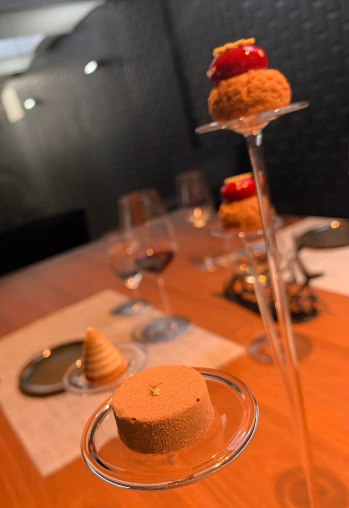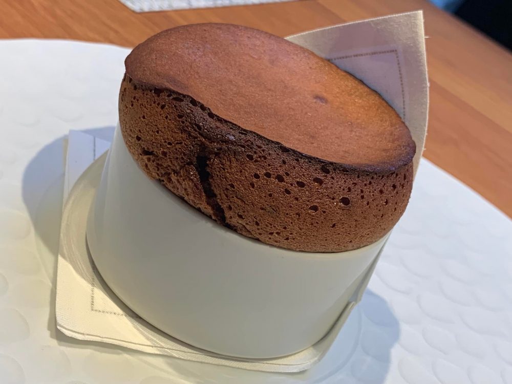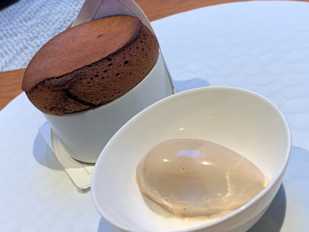 Lasarte a Barcellona, souffle’ al cacao amaro e gelato al te earl grey
