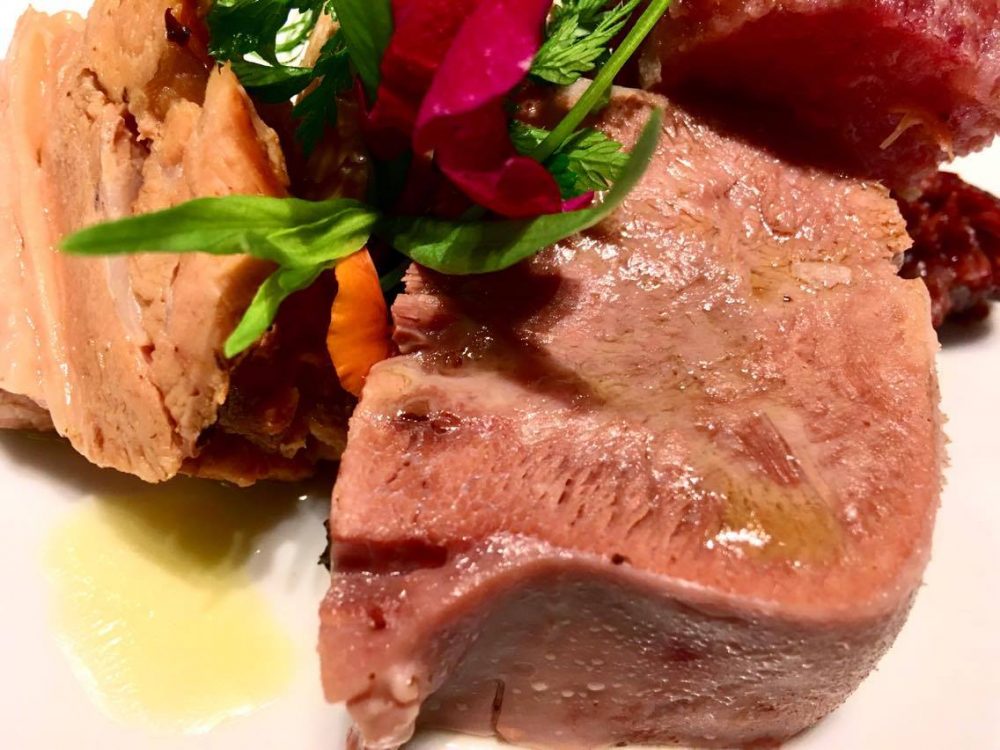Mamma Mia a Roma. Capitolo carni. Selezione infinita della quale ho potuto apprezzare l’elevato grado di cura nella scelta dei tempi di frollatura, dei tagli, della cottura nonchè della proporzione tra grasso e magro. Crudi inappuntabili, Tartare di Chianina, tuorlo d’uovo di quaglia e senape all’antica, preparazione e condimento all’italiana, il giusto. Senza orpelli di sovrabbondanza. Carpaccio di Wagyu sudamericano, Comte e la sua salsa al tuorlo d’uovo. Leggero per nulla invadente il condimento. Un unicum con la morbidezza del Wagyu, più dolce e scioglievole rispetto a quello Giapponese nella preparazione. Scioglievolezza dovuta incredibilmente alla maggior percentuale di magro rispetto al Kurolem Wagyu di Kagoshima perchè nel carpaccio, la parte muscolare e fibrosa è tagliata contro grano, divenendo un accompagnamento nella masticazione all’elevata percentuale di grasso.