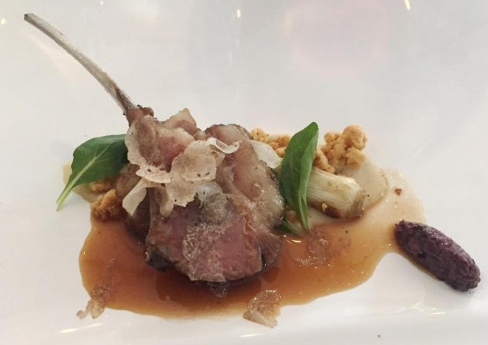 Torre del Saracino, agnello con crumble di finocchietto selvatico, pesto di olive nere e lamelle di tartufo bianco