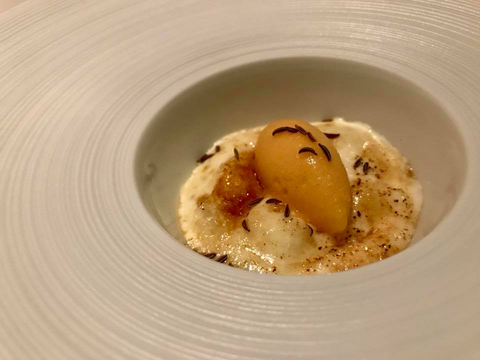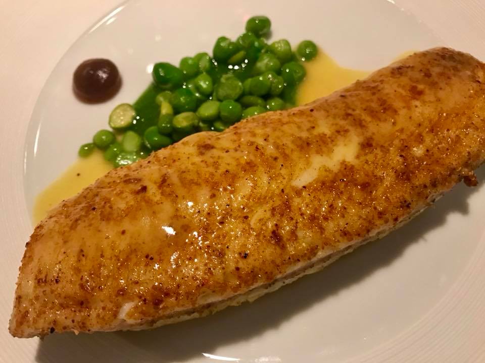 Ci troviamo poi di fronte al piatto della serata, la sogliola con i piselli. Cotta insieme alla lisca come viene proposta da Rech ma decisamente migliorativa, sgrassata grazie al tono acido del latticello e capace di conservare il mare dentro. Un piatto tecnicamente perfetto, dal sapore deciso e ben coniugato ai legumi. Ci piace da matti che l’unico ristorante bistellato di Roma abbia adottato un pesce che nessuno propone più, banalizzato dall’industria, ricordo di bambini anche in questo caso perché era obbligatorio mangiarlo a giorni alternati con il merluzzo che mia madre ogni santa mattina andava a comprare al mercato del pesce. Bene apprendiamo che invece è il piatto che ha dato meno soddisfazione: un po’ perché c’è chi non apprezza la cottura con la lisca, e questi sono gli incompetenti di come si mangia il mare, un po’ perché c’è chi dice che mangiare una sogliola in un bistellato è declassante, è questi sono gli incompetenti della vita. E capiamo allora ancora una volta quanto sia difficile il lavoro di ristoratore e come sia quasi impossibile uscire dagli schemi in Italia. Insomma, la sogliola si deve mangiare sfilettata con un po’ di limone quando stai tirando le cuoia in ospedale! Insomma quel che vale per il pollo si adatta anche alla sogliola.