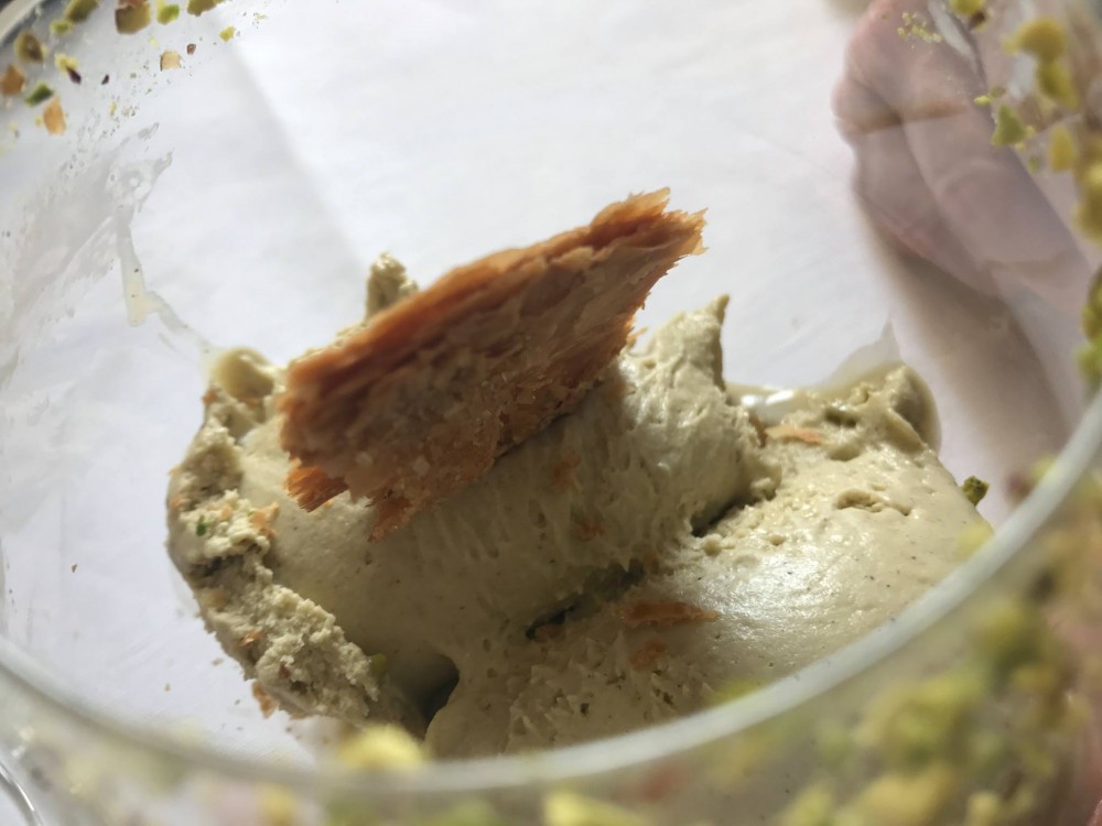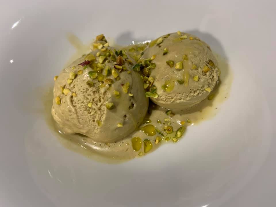 Pescheria, semifreddo al pistacchio e olio extravergine di oliva