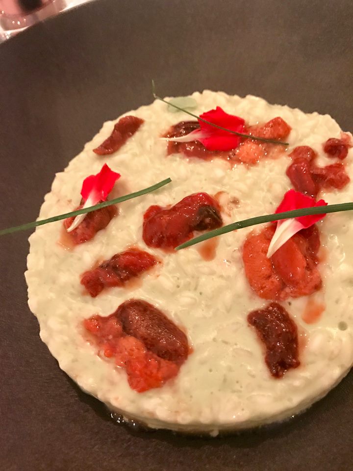 Una chicca che presuppone attenzione al territorio interno della Campania oltre che capacità di fornirsi da un buon produttore locale. Bella l’esecuzione con l’acqua di pepeprone che lascia il sapore senza appesantire il piatto. Un piatto che ptrebbe anche fare a meno dell’elemento animale lasciandosi andare sul vegetale.