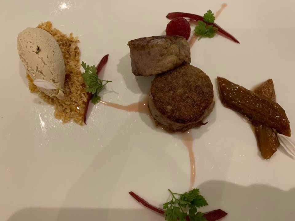 Re Mauri’, Chateubriand in crosta con chutney di mele, ananas e ciambotta in cartoccio e salsa bernese
