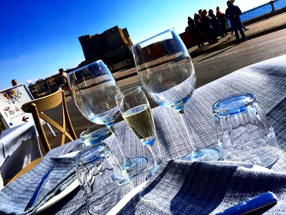 Essenziale, lineare, pulita. La proposta gastronomica del ristorante I Re Di Napoli vive della location sulla quale insiste, del traffico turistico, ma soprattutto dello splendido panorama e della materia prima. Nessun compromesso. Sia sul valore del pesce che sulla provenienza. L’ idea dei patron Mirco Martucci & Roberto Biscardi e’ quello di essere un ristorante a tutto tondo. Lontano dalle carte turistiche a prezzo fisso. Un ristorante che offra una proposta completa questo si. Pizza & Ristorazione. Forte di una materia prima che vive del diretto contatto con i pescatori e di una ricerca spasmodica sul conchigliame. Ostriche Fin de Claire, Tartufi di Mare, Mandorle e Cannolicchi. Pesci di roccia. Pescato azzurro dei Nostri mari. Spigole, Scorfani e Pezzogne.