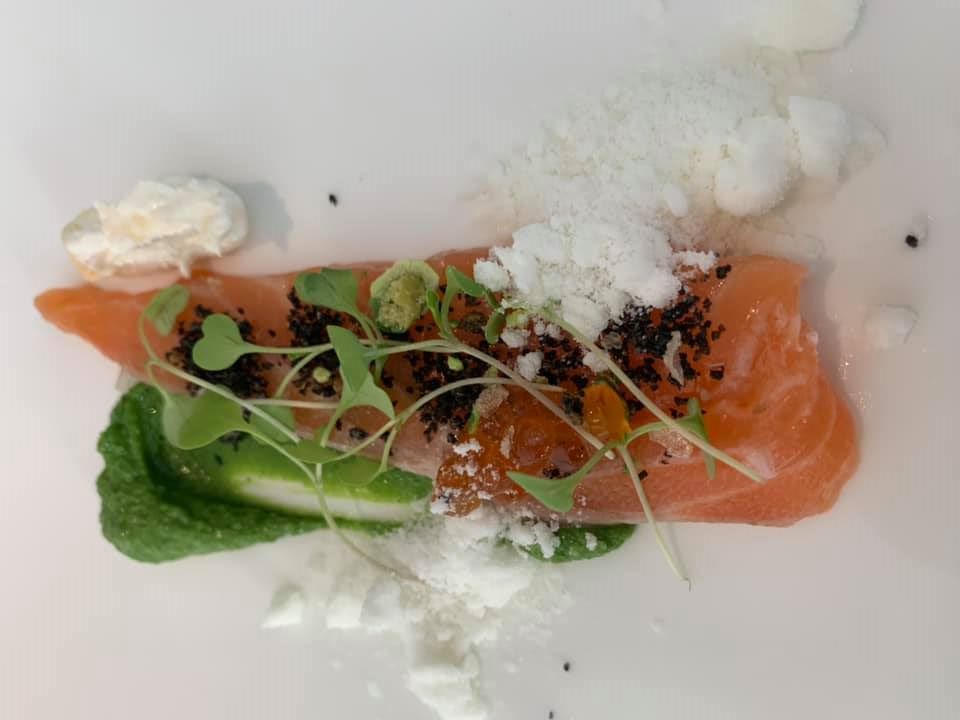 Re Santi e Leoni – Salmone, neve di mozzarella, rucola e wasabi