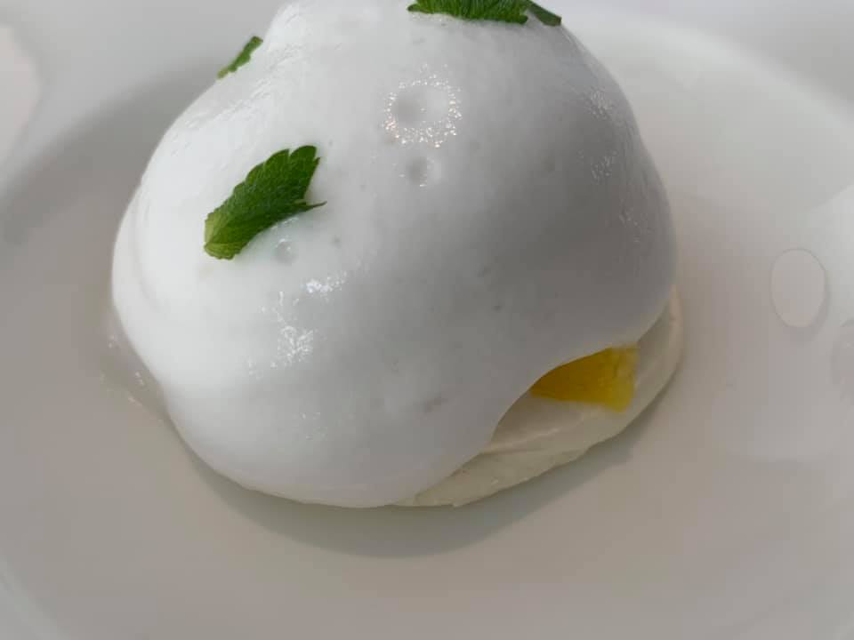 Re Santi e Leoni – Meringata, pesca, mandorla, basilico e limone