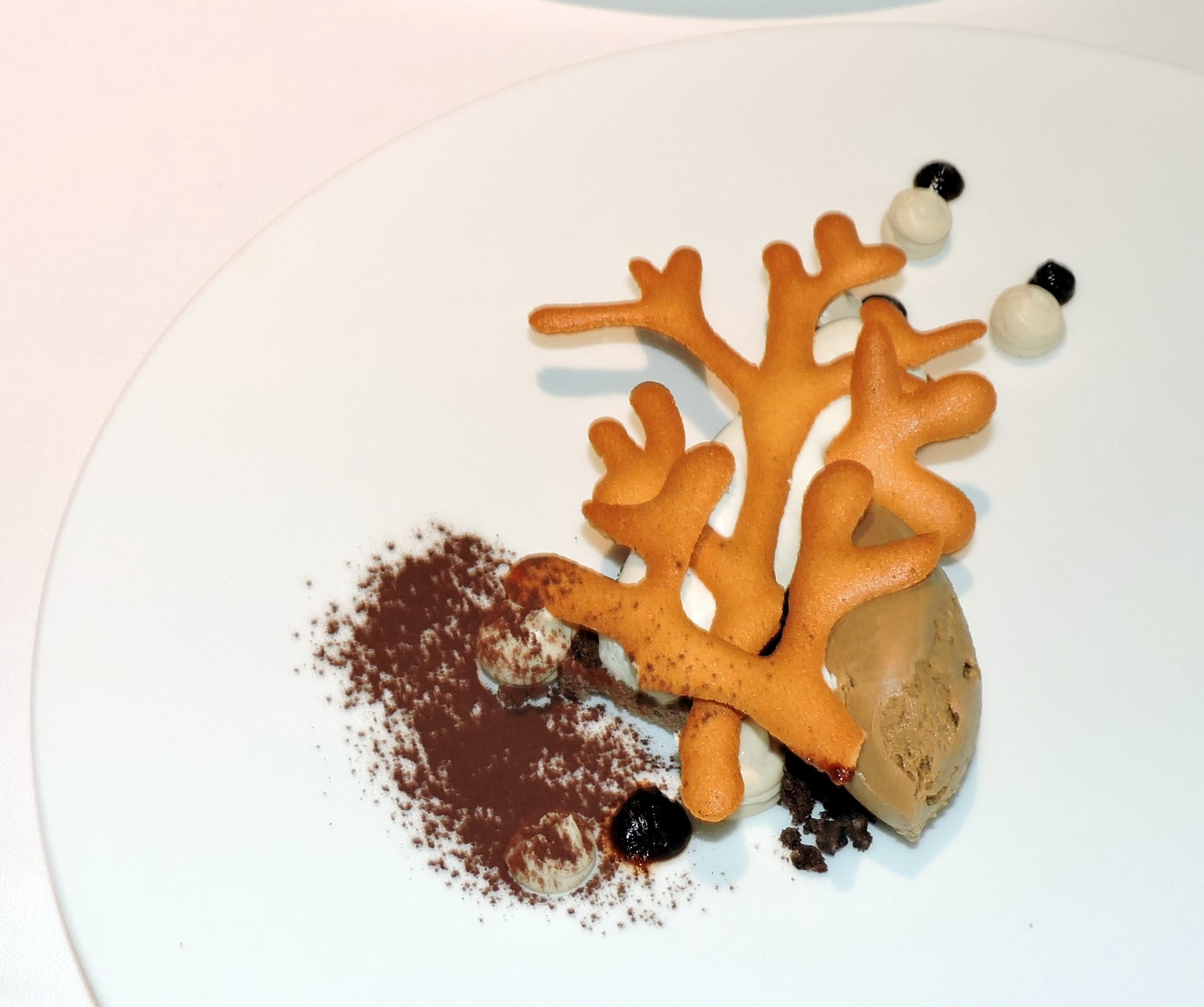 Re Santi e Leoni – Foie gras, gamberi, mandarino e cacao amaro