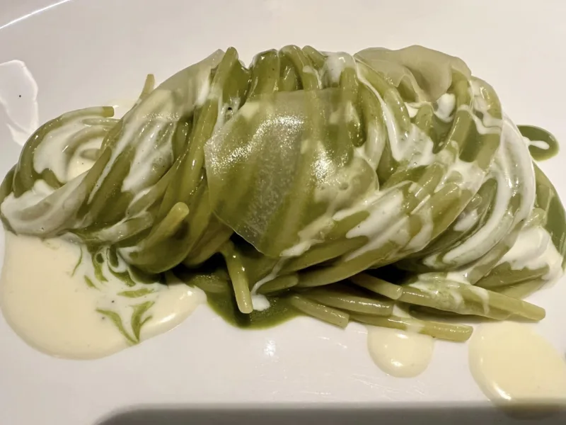 Seguiamo Luigi Salomone da sempre, lo abbiamo visto all’opera nel 2017 anche a New York con grandi e moderni piatti di pasta. Siamo di fronte ad un vero e proprio talento che può e deve dare molto alla cucina campana se riesce in quello che hanno fatto alcuni grandi della generazione che lo ha preceduto, codificare alcuni piatti davvero buoni e particolarmente riusciti. Come la tagliatelle al caffè.