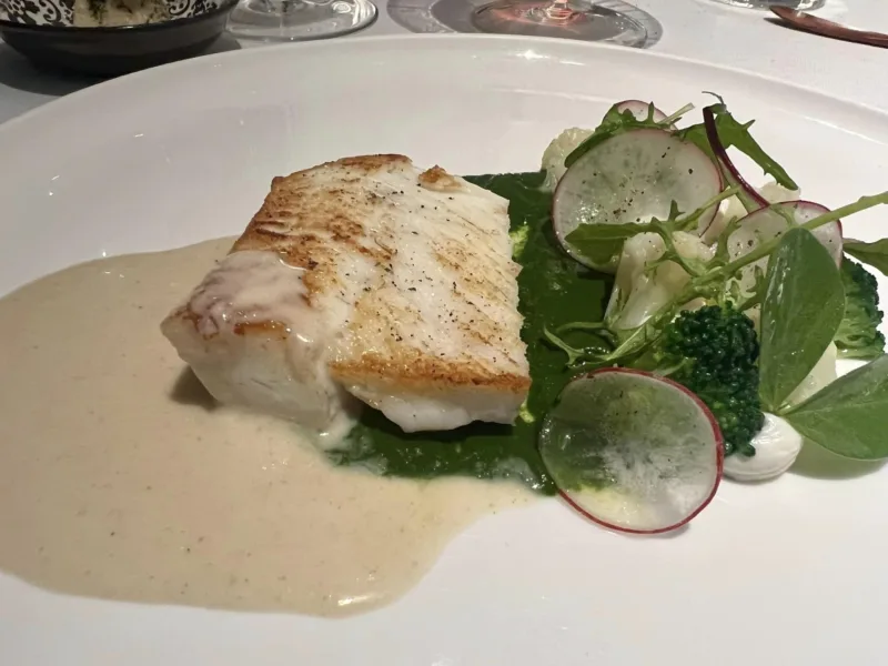 Re Santi e Leoni – Spigola in guazzetto di vongole, finocchio e limone nero