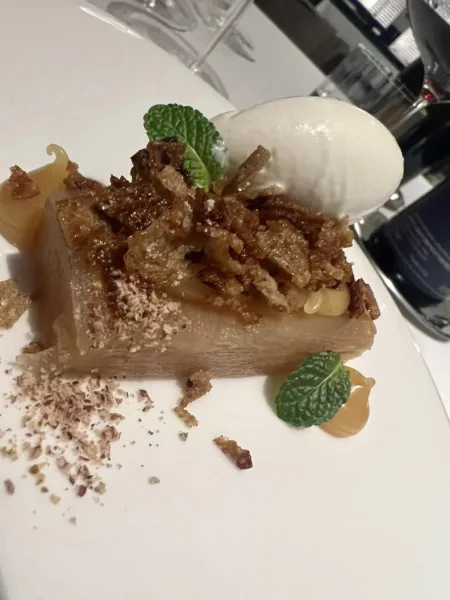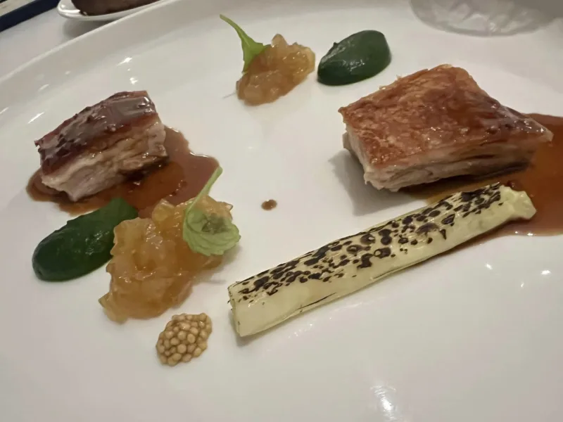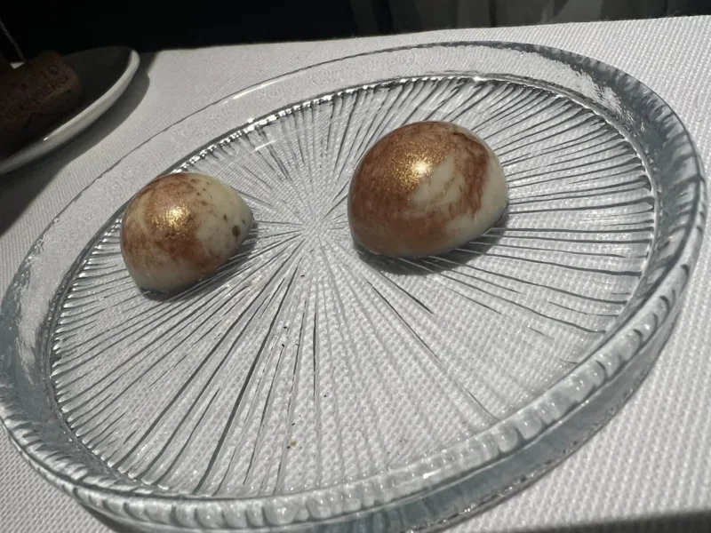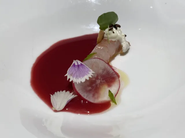 Secondo il nostro modesto parere, Luigi è uno dei cuochi più promettenti in Italia e siamo convinti che questa esperienza che lo vede anche in un ruolo di responsabilità lo maturerà ulteriormente. Sul piano del gusto, gioca con pochi elementi, l’estetica del piatto è subordinata alla capacità di centrare il sapore della materia prima a cui altri elementi fanno da spalla. Caldo/freddo, morbidezza acidità, anche un po’ di mestiere che vede concludere il pranzo con dolci non punitivi che rimandano ai sapori un po’ più zuccherini (ma non stucchevoli) della pasticceria tradizionale.