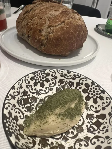 Degni di nota sono il pane realizzato con il lievito madre e i dessert eleganti di grande tecnica.