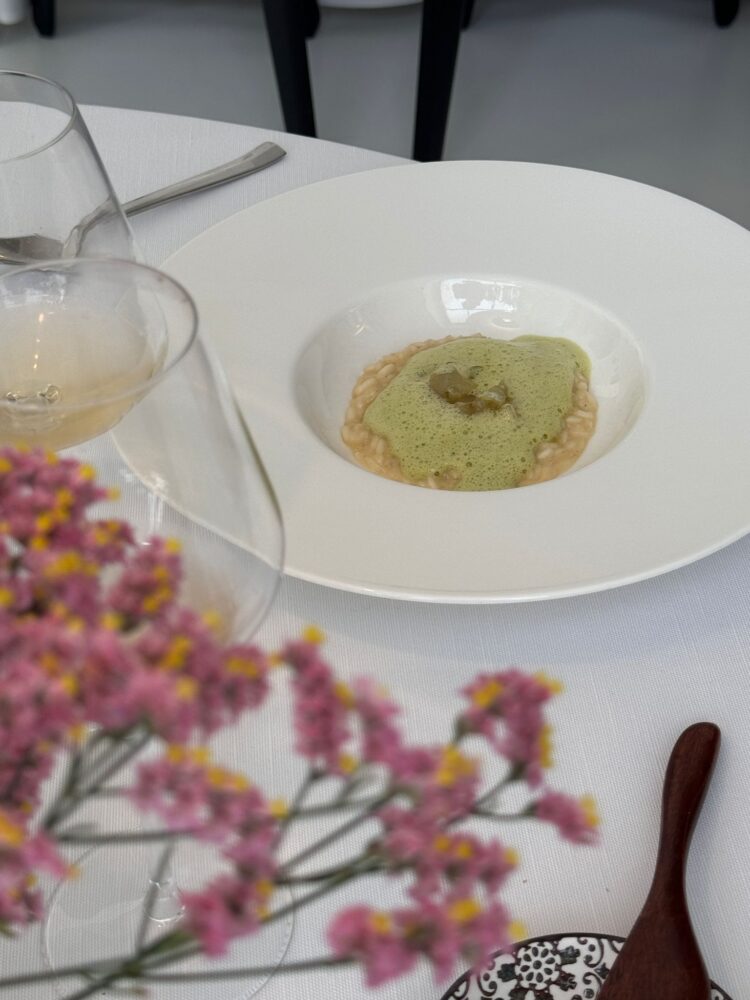 Ho trovato lo chef Luigi Salomone e la sua brigata ancora più forti di come li avevo vissuti l’ultima volta. Il locale mette una pace interiore impagabile. Mura total white, fiori rosa microscopici sul tavolo, quiete più che silenzio, spazio più che larghezza, superiorità più che altezza.