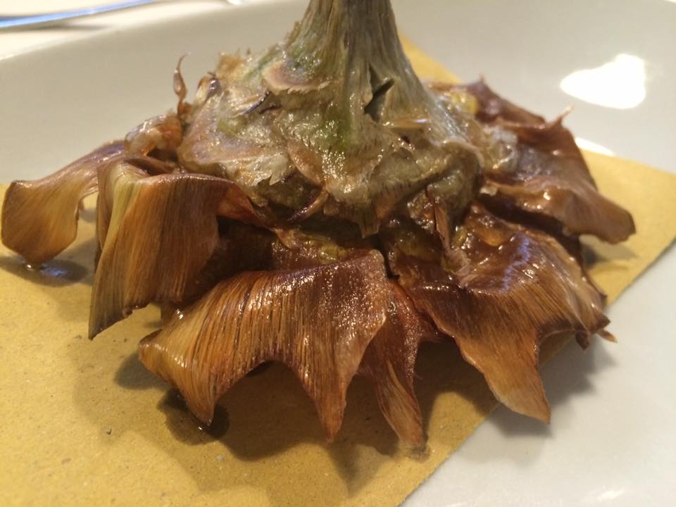 Anche il carciofo alla giudia, dall’aspetto un po’ deboluccio, in realtà segnala una buona mano della cucina anche nei fritti.