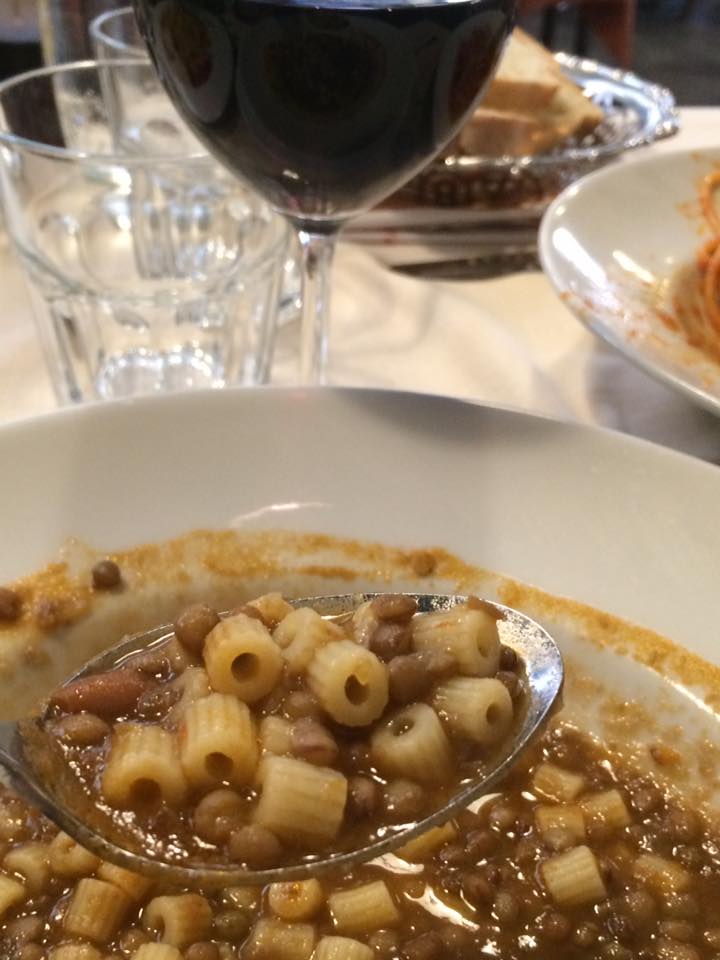 E così può capitare di assaggiare una zuppa di pasta e lenticchie a dir poco sontuosa, una delle migliori mai mangiate, profumata, corposa, con il legume ben cotto ma sodo, davvero un piatto di grande conforto.