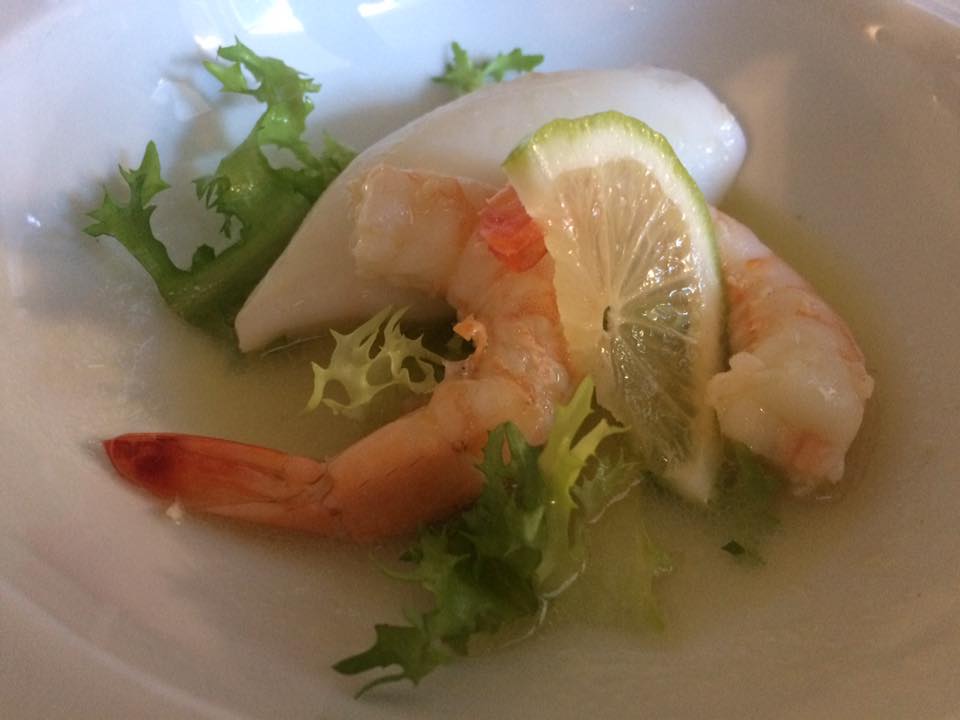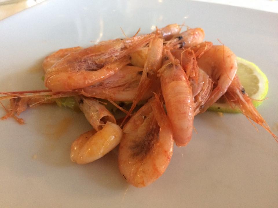 Delicata l’insalatina tiepida di mare, tutto cotto a vapore, con il totanetto, magnifico, che si scioglie in bocca, mentre non si finirebbe mai di ‘pescare’ con le mani nel piatto i gamberetti al limone saltati in padella, serviti tutti interi, profumati e croccanti.