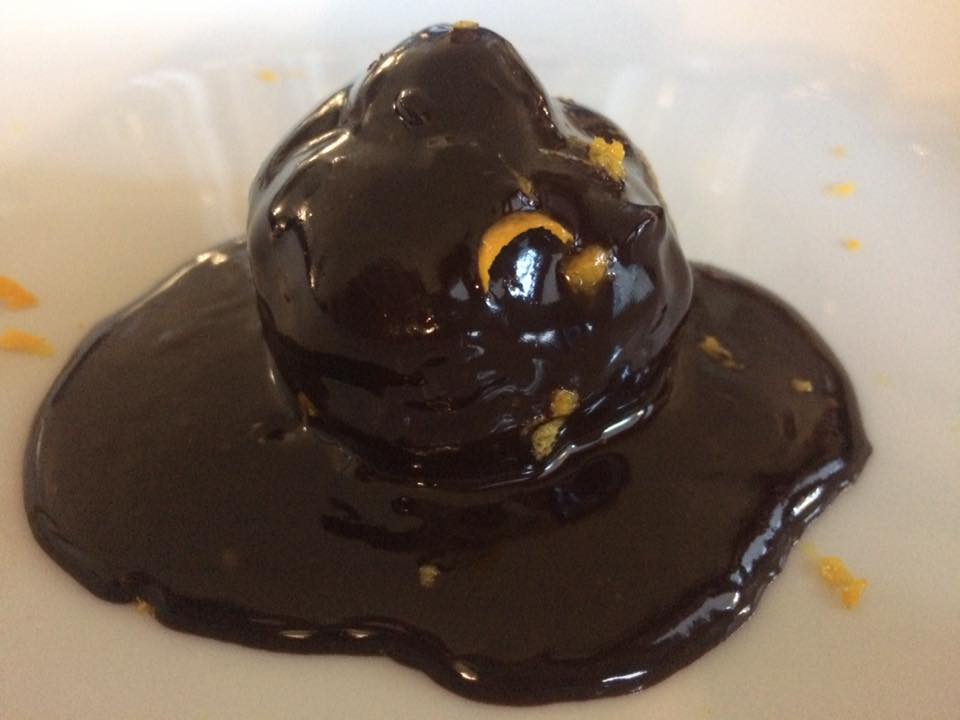San Pietro, profiterole cioccolato e arancia