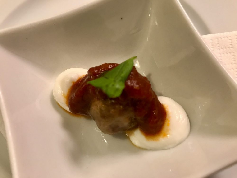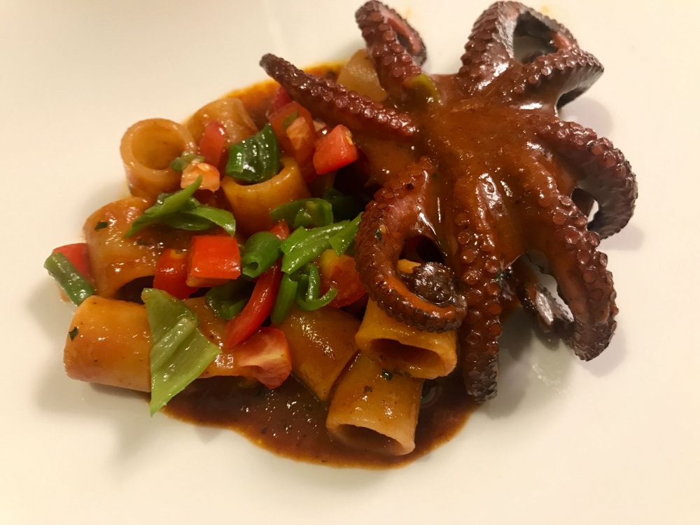 Il piatto che segue, i tubetti con il polpo, farebbe storcere il naso a qualche gastrofighetto. E’ un piatto da osteria, osserverebbe il castrofighetto, lo capiscono tutti, poteva fare la chips di polpo! Eh, magari ne trovassimo così in giro in stellati e parastellati: polpo cotto perfettamente, sugo tirato, cottura della pasta perfetta. Sapore centrato, semplice e riconoscibile. Un piatto che strappa il sorriso ad ogni cliente.